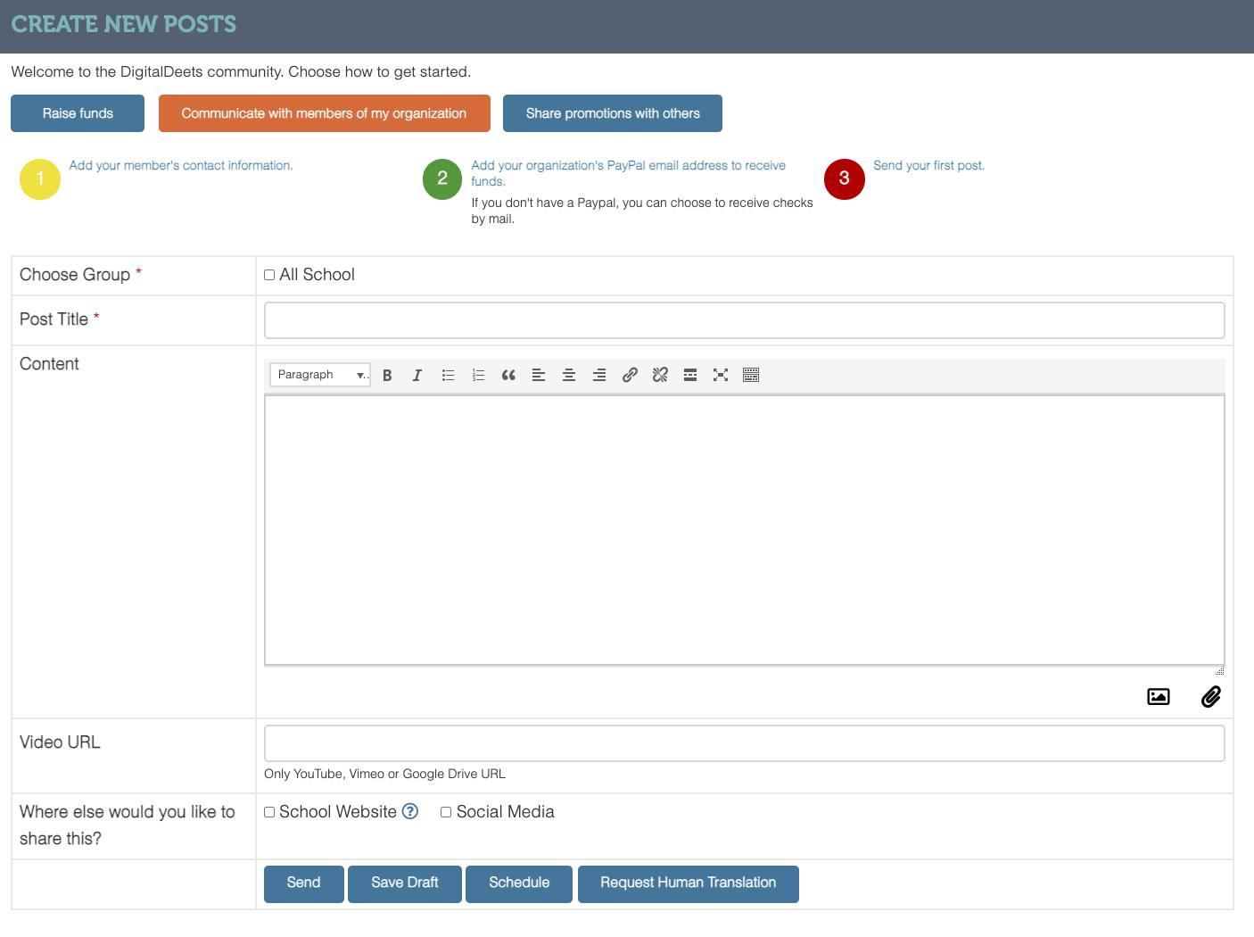 Whether you are are a school, a PTA, a non-profit, business, or any other organization, you can use Digital Deets to seamlessly communicate with members of your organization in an organized and timely manner. And while you're at it, you can make money through our fundraising software!