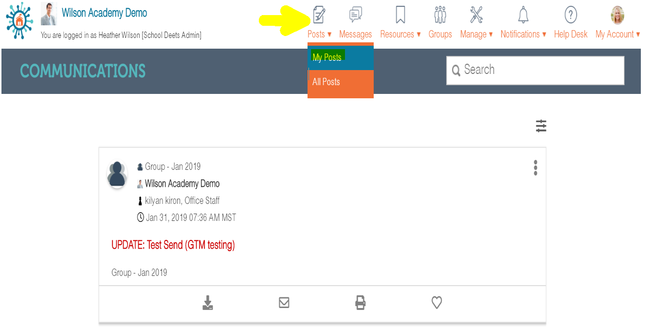 1. Click on the Posts icon and choose My Posts.